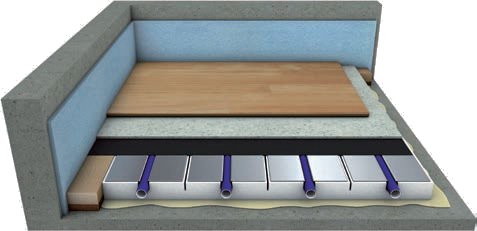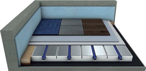 Net als bij het Qualitherm OKO-systeem zijn de verwarmingselementen afgewerkt met een geïntegreerde aluminium lamel met een omega-vormige sparing voor de 16mm meerlagen buis, welke zorg draagt voor goede warmte overdracht en verdeling. De systeem elementen zijn geschikt voor alle soorten afwerking.