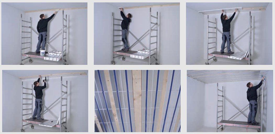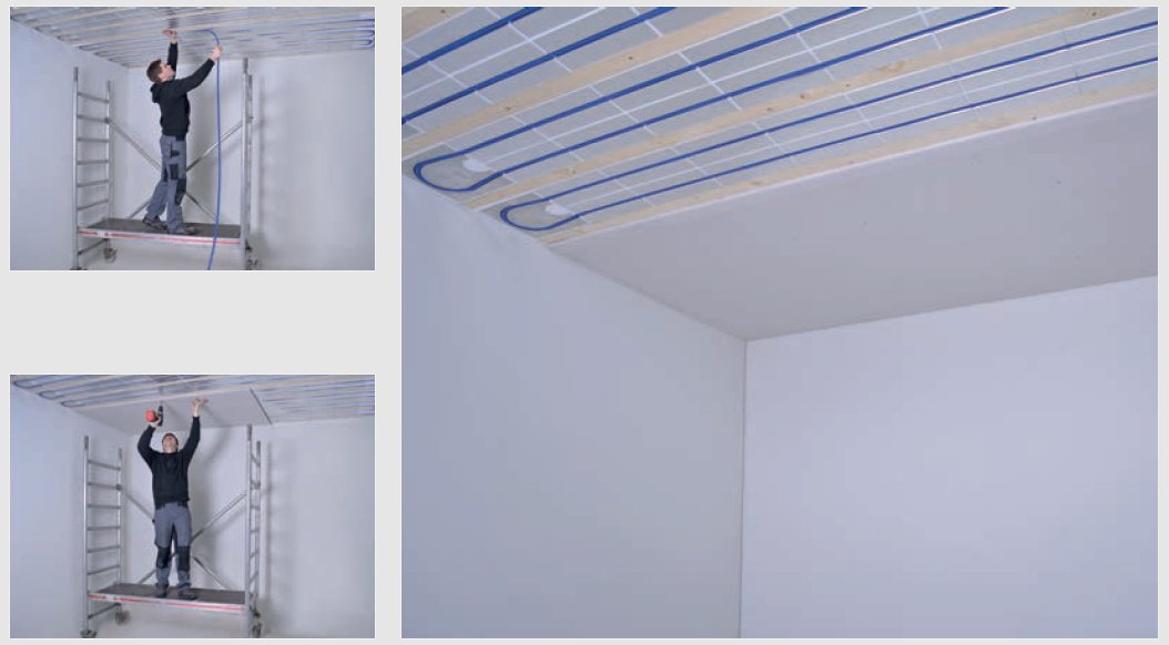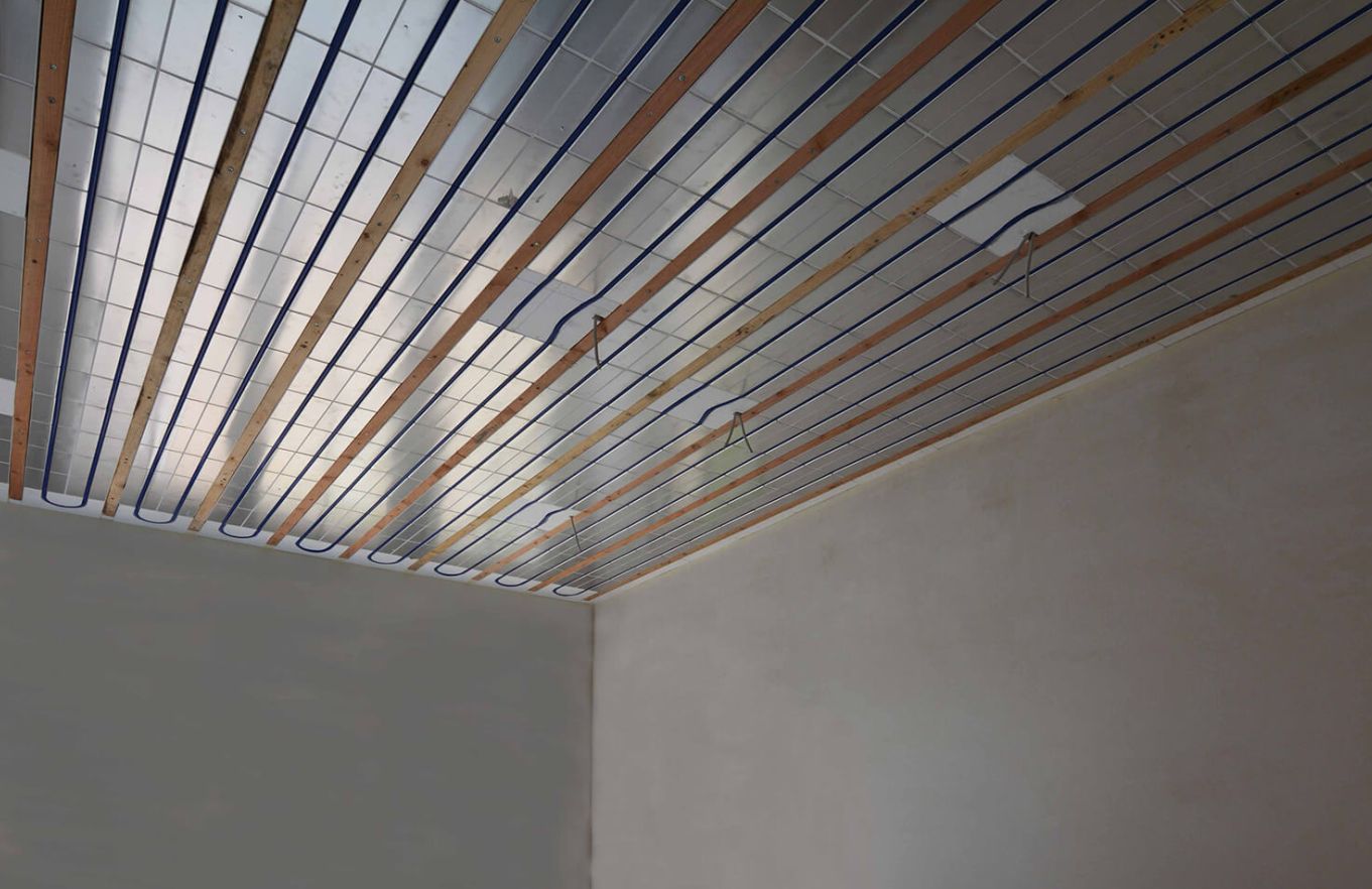 Plafondverwarming werkt volgens hetzelfde principe als vloerverwarming: de verwarmingsbuizen in het plafond zullen de ruimte verwarmen. De verwarmingsbuizen in het droogbouw EPS30 systeem worden tussen latten aan het plafond bevestigd en daarna afgewerkt met bijvoorbeeld gips- of fermacellplaten.